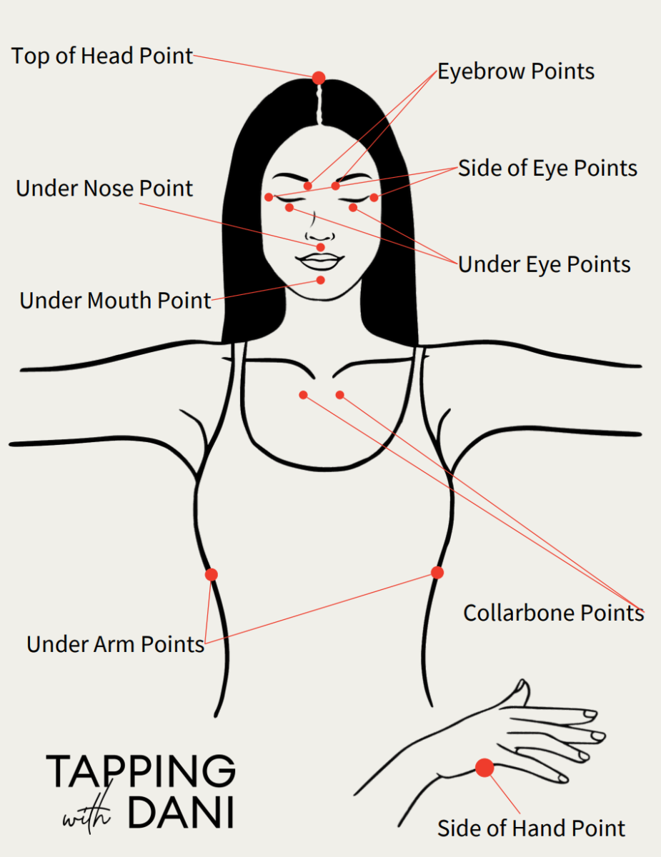 Then you’d tap through a sequence of points on your body, lightly using your fingertips while repeating short, honest phrases that name what you’re feeling.